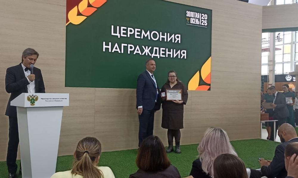 На награждении, состоявшемся 9 октября 2025 года, присутствовали исследователи-разработчики обособленного подразделения СЗНИИМЛПХ ВолНЦ РАН: н.с. отдела кормов и кормления О.Д. Обряева и зав. лабораторией химического анализа ЦКП П.А. Фоменко.