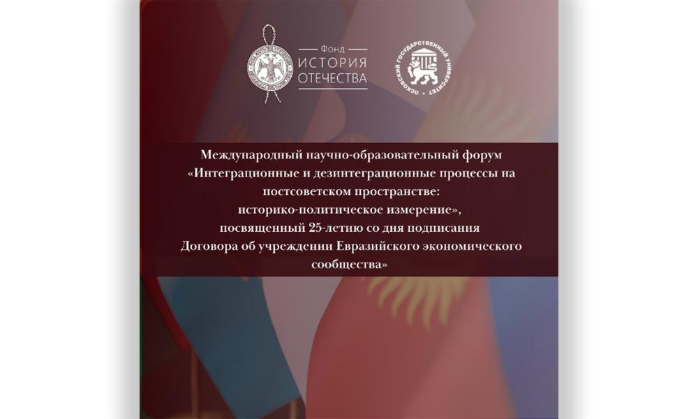 Цель форума – обсуждение итогов и перспектив интеграционных и дезинтеграционных явлений и процессов на территории постсоветского пространства, а также привлечение внимания экспертного сообщества и широкой общественности к необходимости взвешенного и научно обоснованного подхода к проблеме участия Российской Федерации и государств ЕАЭС в интеграционных процессах современности.
