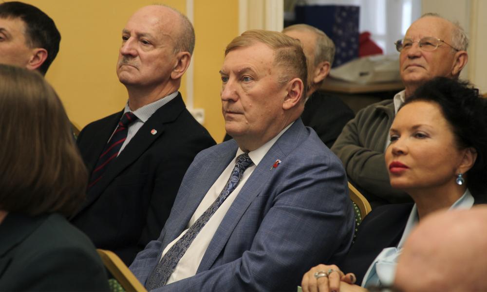 Со словами поздравления к В.А. Ильину обратились его коллеги: заведующий кафедрой менеджмента и инноваций СПбГЭУ д.э.н., профессор А.Г. Бездудная, депутат Вологодской городской Думы, заместитель Председателя Вологодской городской Думы А.В. Чуранов, директор Вологодского городского отделения РОР-СППВО К.А. Задумкин, заведующий Базовой кафедрой г. Вологды А.А. Колинько, заведующий отделом общественного здоровья по г. Вологде Р.А. Касимов, член Союза писателей А.В. Маклахов.
