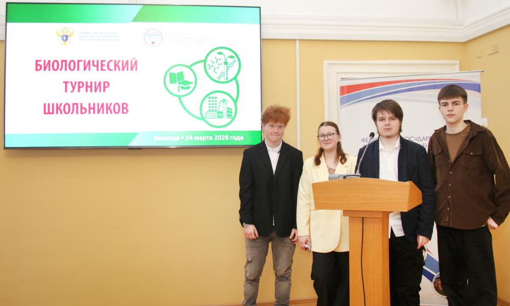 24 марта 2026 года в ФГБУН ВолНЦ РАН среди обучающихся Вологодской области состоялся VII Биологический турнир школьников. Мероприятие включало два этапа: заочный и очный. На заочный этап поступили заявки из 17 учебных заведений Вологодской области: школ г. Вологды, г. Череповца, г. Великий Устюг, г. Тотьмы, Вологодского, Вожегодского, Грязовецкого и Череповецкого муниципальных образований. В рамках турнира участники погрузились в обсуждение актуальных природоохранных и технологических задач. Дискуссия охватила вопросы повышения сохранности древесины и вовлечения в оборот невостребованного лесного сырья. Особый интерес и оживленную полемику вызвали кейсы, посвященные естественным методам восстановления популяции пчел, созданию биоразлагаемой упаковки из непищевого сырья, а также внедрению безотходных технологий переработки отходов животноводства непосредственно на фермах для получения дополнительных ресурсов.